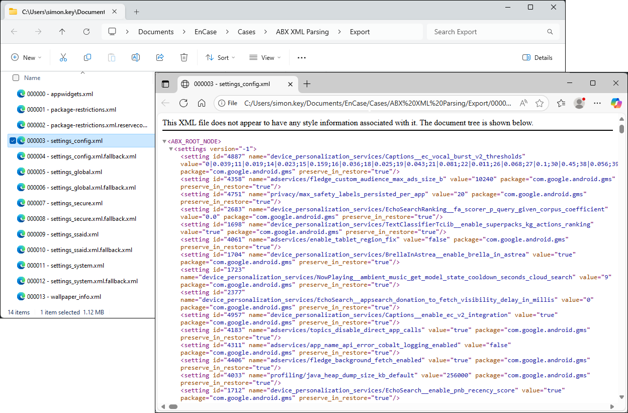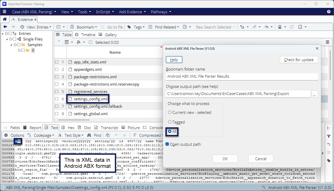 Regardless of user selection, only those files that are current and have an ABX file-signature will be parsed. Other files, folders, and system objects (e.g., unallocated clusters and internal files) will be ignored.